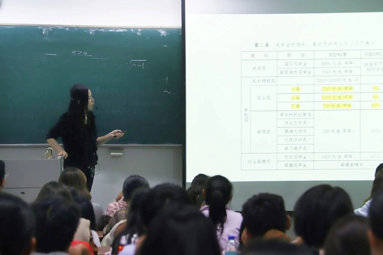 讲座伊始,赵亚婷对本科生奖学金的评定方法进行了说明。她逐一介绍了奖学金的类别、等级及评定比例,阐述了申报条件及评定程序等要求,并特别强调了文化成绩与道德品质在奖学金评定中的重要性。