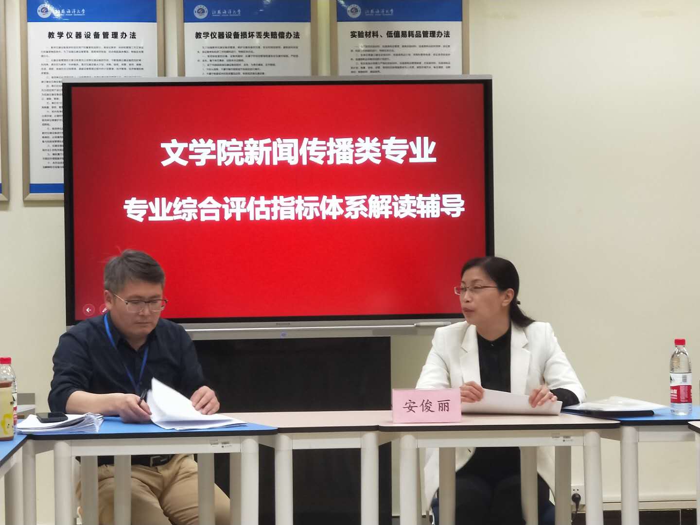 根据江苏省教育评估院年度工作安排,bevictor伟德文公司新闻传播类专业今年将接受省级专业综合评估。为准确理解评估指标体系,积极做好迎评工作,文公司5月13日下午邀请公司教学质量管理处处长安俊丽来院指导,解读江苏省专业综合评估指标体系。会议由文公司经理吴明忠主持,教学质量管理处质量科科长李华和文公司新闻系、广告系全体教师参加会议。