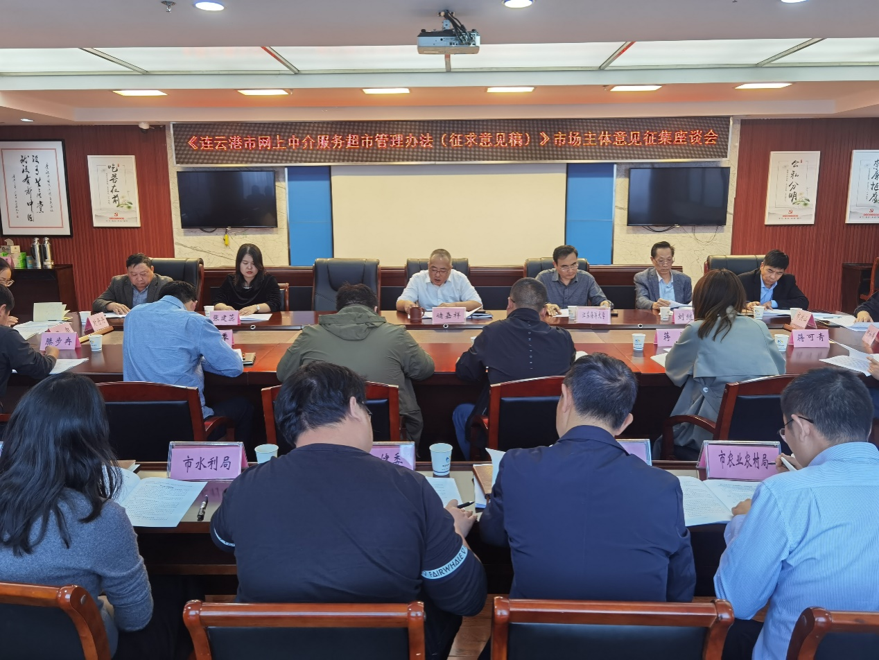 (2023年10月24日《连云港市网上中介服务超市管理办法》起草团队参加市政务服务中心市场主体征集意见座谈会)