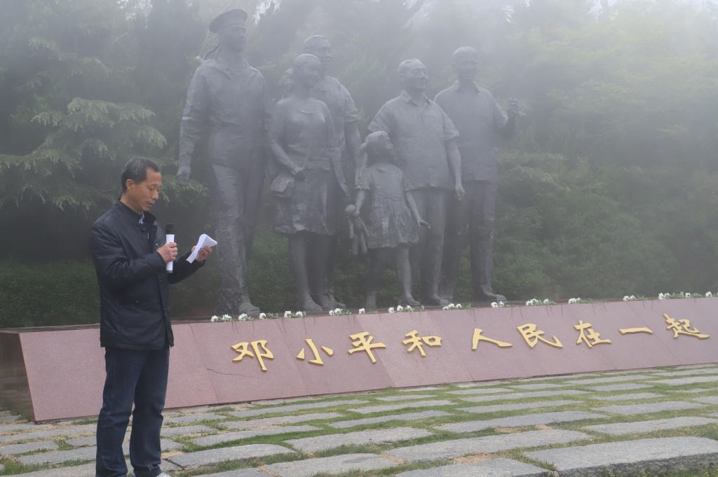 下午2时,团日活动正式开始。团员代表身着素衣、佩戴团徽、手执白菊,列队整齐地肃立于《邓小平和人民在一起》主题雕塑前。国歌响起,团员们满怀激情,将自己内心的感恩与敬意化作歌声倾涌而出。敬献白菊之后,全体团员郑重鞠躬,向邓小平同志表达了深深的缅怀之情。