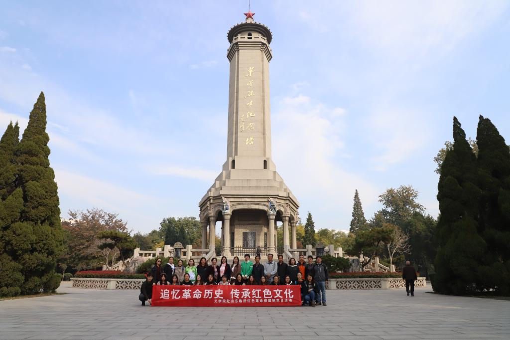 以临沂为中心的沂蒙山区,有着光荣的革命传统。为纪念在抗日战争和解放战争中牺牲的华东地区革命烈士,11月3日,文公司教工党员和第56期党校学员在伟德体育党委书记马恒民的带领下,参观了华东革命烈士陵园、沂蒙革命纪念馆、中共中央山东分局旧址等地,开展了“追忆革命历史,传承红色文化”主题党日活动,共同追寻红色足迹,坚定理想信念。
