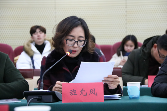 (连云港市新闻传播学会会长、文公司新闻系主任班允凤发言)