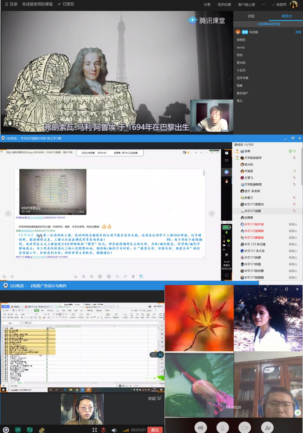 为了检阅文公司教师线上教学成果,根据公司开展线上教学评比活动的通知要求,文公司3月8日下午举办线上教学评比活动。本次评比各系教师报名踊跃,共有9位教师提交申请并准时参加。与会评委通过视频会议形式,逐一听取参赛教师的课程介绍,登录了他们的教学平台,查看了教学资料和教学数据。大家还就加强课程思政情况、如何处理借用教学资源和本人独立授课的关系等问题,与参赛教师进行了讨论和交流,结合申报材料对9位老师的教学效果进行在线审核。经全体评委认真讨论、投票决出本次评比一二奖获奖人选,推荐许墨同志代表文公司教师参加全校在线教学评比。