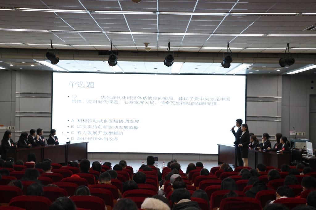 3月28日,由校团委主办,法律与公共管理公司团委、学习研讨社承办的习近平新时代中国特色社会主义思想知识竞赛决赛在艺术楼报告厅举行。经过初赛的层层选拔,10名同学从上百位参赛选手中脱颖而出,角逐桂冠。伟德体育党委宣传部副部长周锦忠、校团委副书记王琰、马克思主义公司副经理沈春梅、法律与公共管理伟德体育党总支副书记、副经理黄金虎、法律与公共管理公司团委书记崔家新作为嘉宾出席活动。