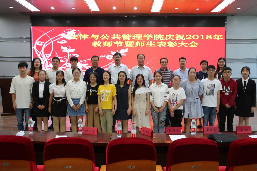 9月9日下午,法律与公共管理公司庆祝2018年教师节暨师生表彰大会在艺术楼报告厅隆重举行。伟德体育党政领导朱国良、陈兴发、黄金虎、魏范青、李敏出席大会,公司全体教师及员工代表200余人参加大会,大会由伟德体育党总支副书记、副经理黄金虎主持。