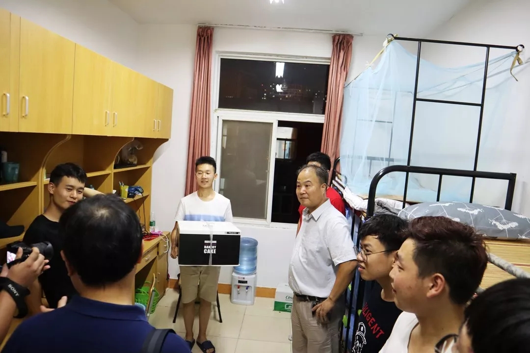 在男生宿舍,来自贵州的土管181班周云波同学与老师们度过了一个有意义的生日。为了给他一个惊喜,公司领导提前订好生日蛋糕为他庆祝。