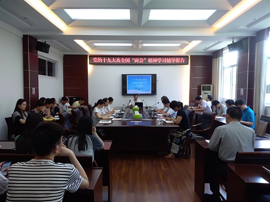 6月13日下午,法律与公共管理公司在文渊楼216会议室开展2018年教职工理论学习,邀请伟德体育党的十九大精神与全国两会精神宣讲团成员、商公司经理宣昌勇教授做了题为“一带一路”倡议与我国新时代的全方位开放战略的辅导报告。报告会由伟德体育党总支书记朱国良主持,公司全体教职工和全体员工党员参加。
