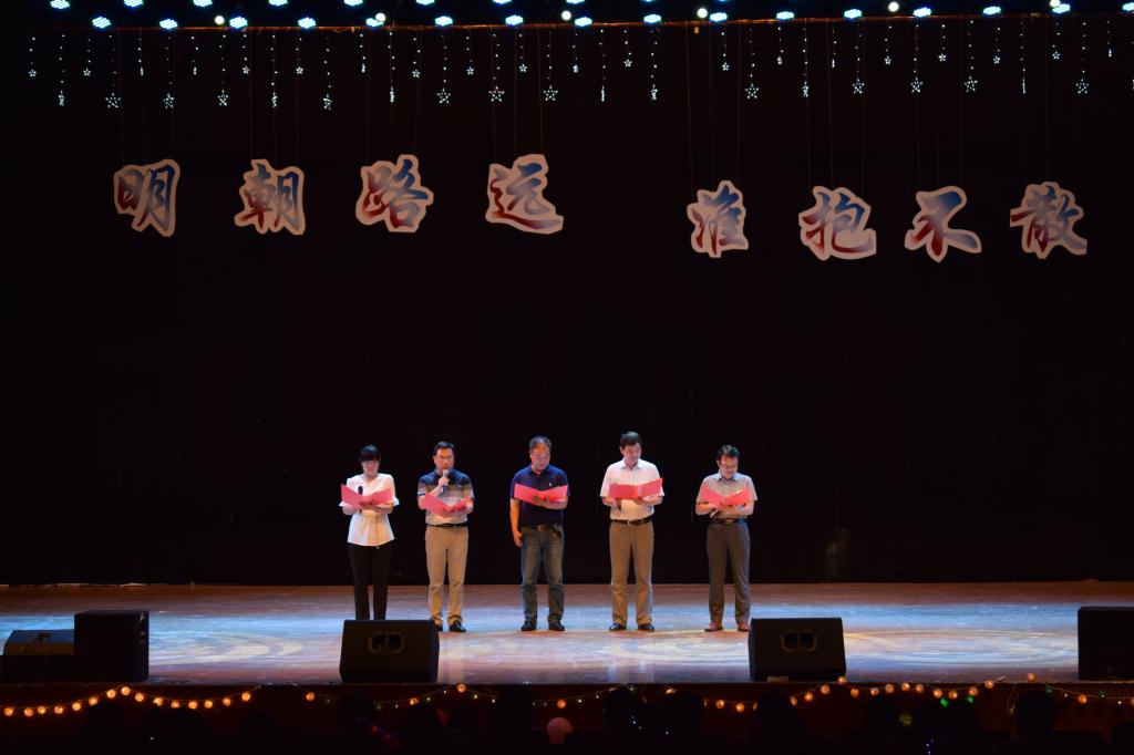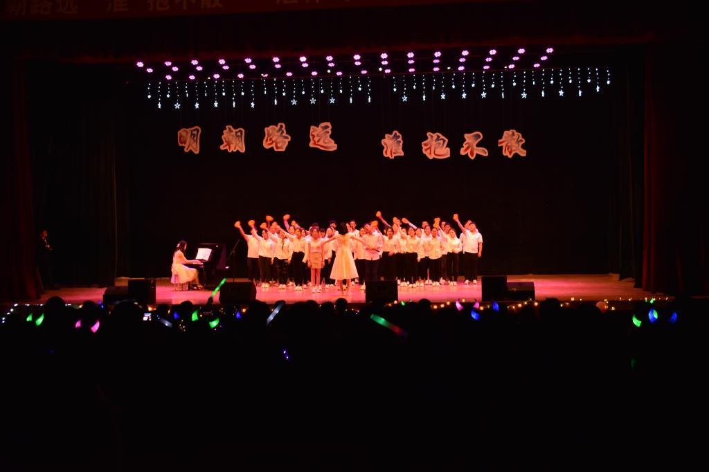 随后,由武升林、杜金键共同演绎的歌曲《朋友别哭》将大家带入难舍难分的离别场景;轮滑社酷炫的技术赢得现场观众的阵阵喝彩;Yink乐队主唱一曲《再也没有》,用磁性的嗓音震撼着每个人的心灵。当舒缓的音乐犹如粼粼江水流淌过指间的一刻,公司领导朱国良、陈兴发、黄金虎、魏范青、李敏深情朗读了《给毕业生的一封信》,传达着老师对学子们破茧化蝶、潜龙腾渊的真挚祝福和不忘初心、砥砺前行的深深期盼。最后,在大合唱《仰望星空》的歌声中,晚会缓缓落下帷幕。