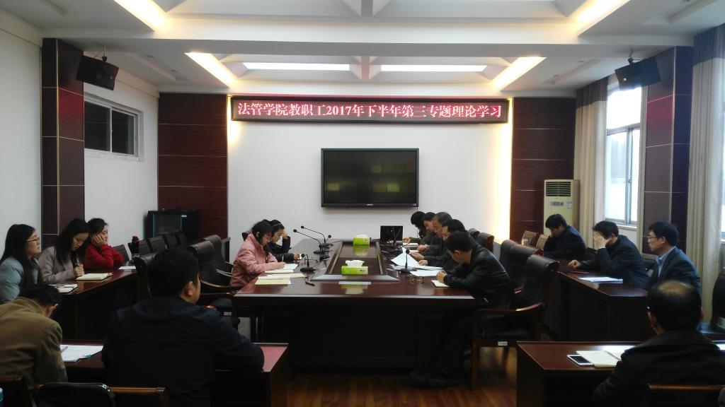 11月15日下午,法管公司在文渊楼216会议室开展2017年下半年第三次教职工理论学习。法管公司全体教师参加,学习会由法管伟德体育党总支书记朱国良主持。
