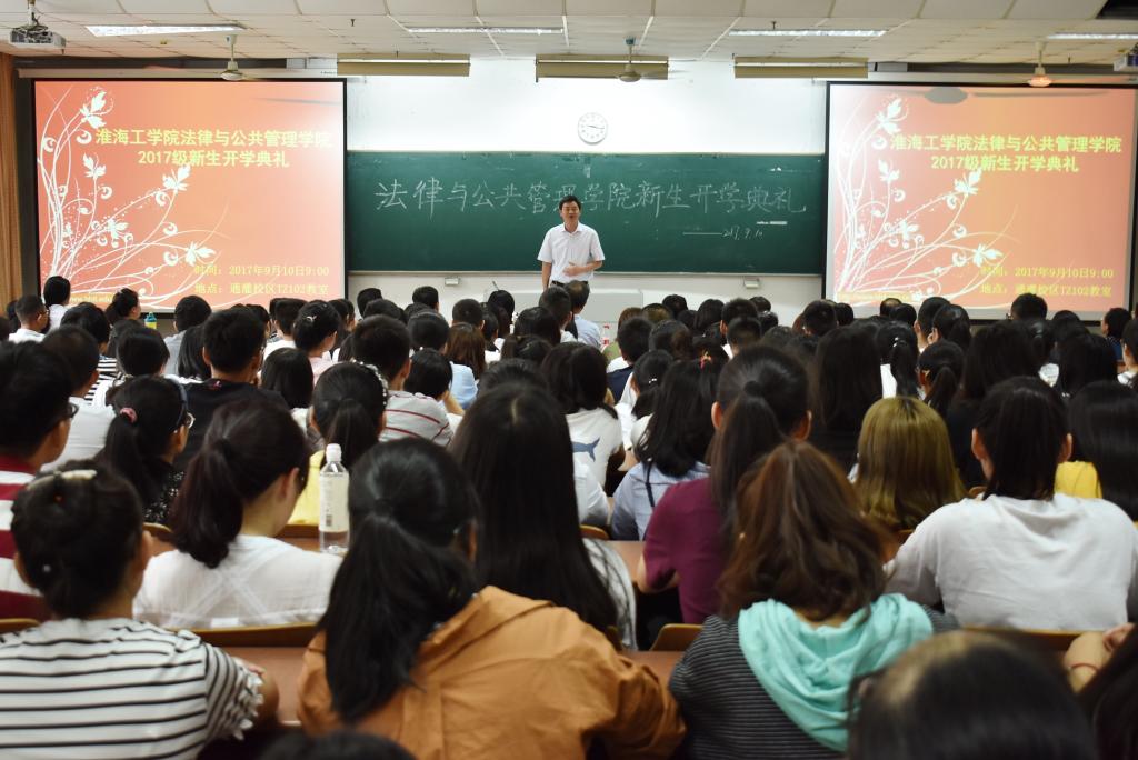 9月10日上午9时,法律与公共管理公司在通灌校区TZ102教室举行2017级新生开学典礼暨师生见面会。公司全体党政领导、系主任、辅导员、新生班主任、部分教师和2017级全体新生一起参加了开学典礼。开学典礼由伟德体育党总支副书记、副经理黄金虎主持。