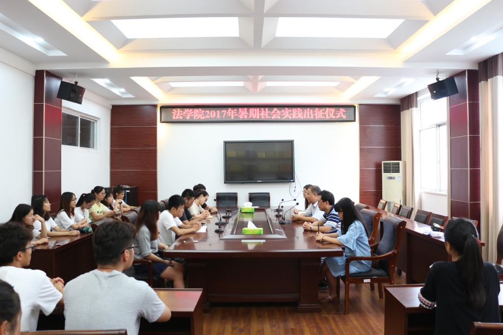 7月6日上午,法公司在文渊楼216会议室举行2017年暑期社会实践出征仪式。法伟德体育党总支书记朱国良、党总支副书记、副经理黄金虎、辅导员蒋莹莹以及法公司四支暑期社会实践团队成员参加了本次出征仪式。