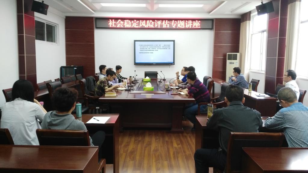 5月11日下午,法公司在文渊楼216会议室举办社会稳定风险评估专题培训会,淮安市政和社会稳定风险评估中心张玉磊博士应邀为法公司教师做了一场题为《重大决策社会稳定风险评估实务》的专题讲座。法公司社会稳定风险评估团队的教师参加了培训。培训会由法公司经理陈兴发主持。