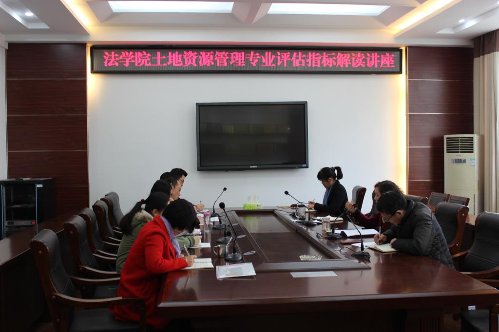 3月29日下午,法公司在文渊楼216室召开土地资源管理专业评估的专家辅导会,邀请校教学质量管理处处长杨雪英教授进行新专业评估指导。法公司经理陈兴发、经理助理李敏和公共管理系全体教师、教学秘书及辅导员参加了辅导会。会议由法公司副经理魏范靑主持。