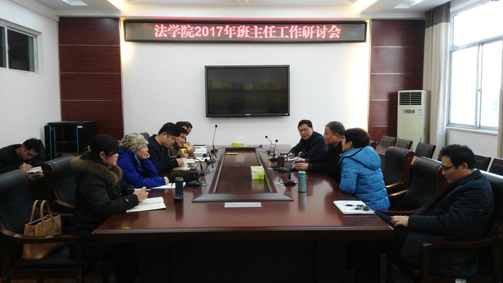 3月8日下午,法公司在文渊楼216会议室召开2017年班主任工作研讨会,法伟德体育党总支书记朱国良、党总支副书记、副经理黄金虎及全体辅导员、班主任老师参加了研讨会。