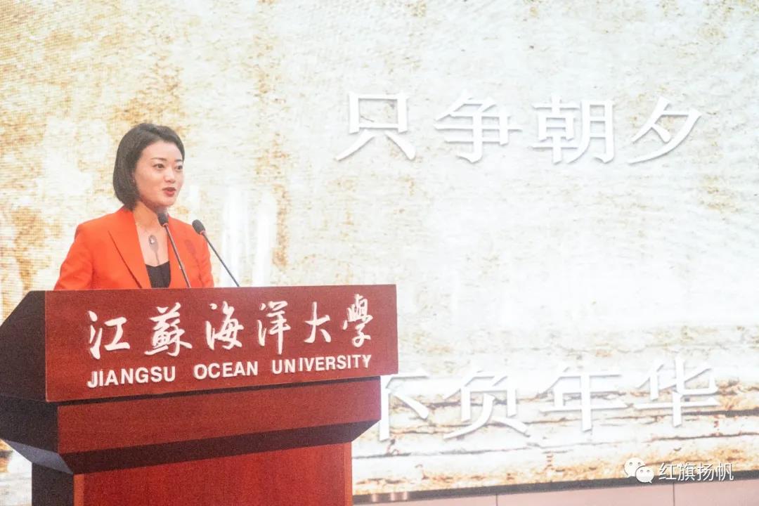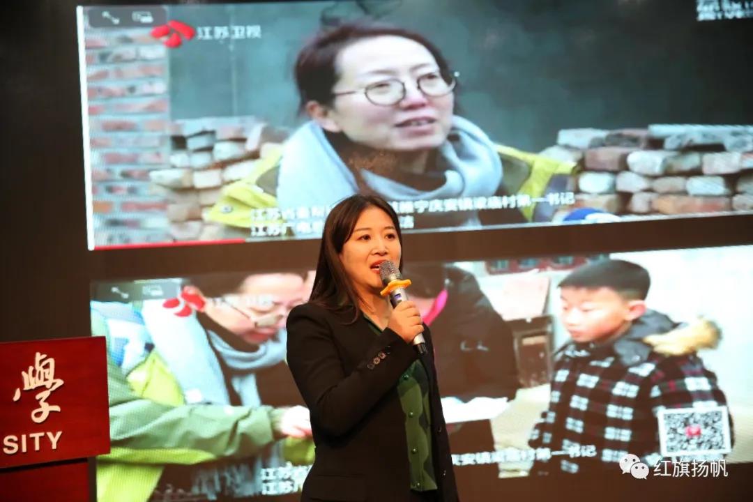 扬子晚报总编办副主任冯可讲解了家贫志坚、奋斗创业的灌南中员工梁晓芹如何在媒体帮助下打好一副坏牌、进入复旦大学上海视觉艺术公司学习、成立尚影文化传播公司、成功后捐资助学回报社会的励志经历。