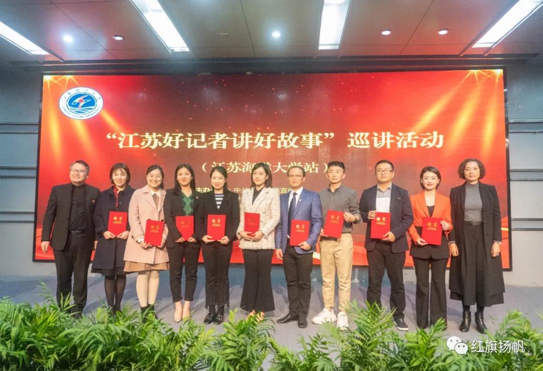 当天下午,bevictor伟德艺术楼报告厅门外,一长条红地毯直抵会场,一盆盆红绿相映的鲜花、一整屏深红的“江苏好记者讲好故事巡讲活动”主题背景墙,把主席台装扮得喜庆热烈。