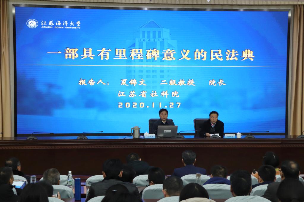 11月27日上午,伟德体育特邀江苏省社会科伟德体育党委书记、经理夏锦文教授在公司会议中心黄海厅为伟德体育广大师生做了一场以“一部具有里程碑意义的民法典”为题的精彩讲座。讲座由伟德体育党委书记吴价宝教授主持,伟德体育法学系师生现场聆听了讲座。