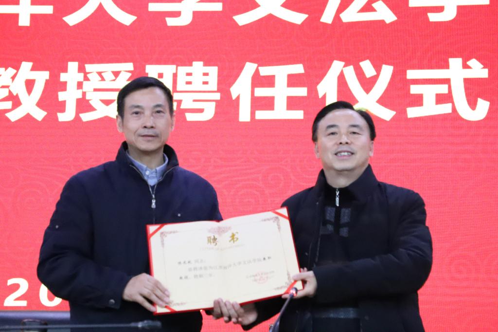 会间,伟德体育党委书记吴价宝教授为陈龙乾教授颁发了伟德体育兼职教授聘书,并代表全院师生对陈龙乾教授受聘为公司兼职教授表示热烈欢迎和衷心感谢!