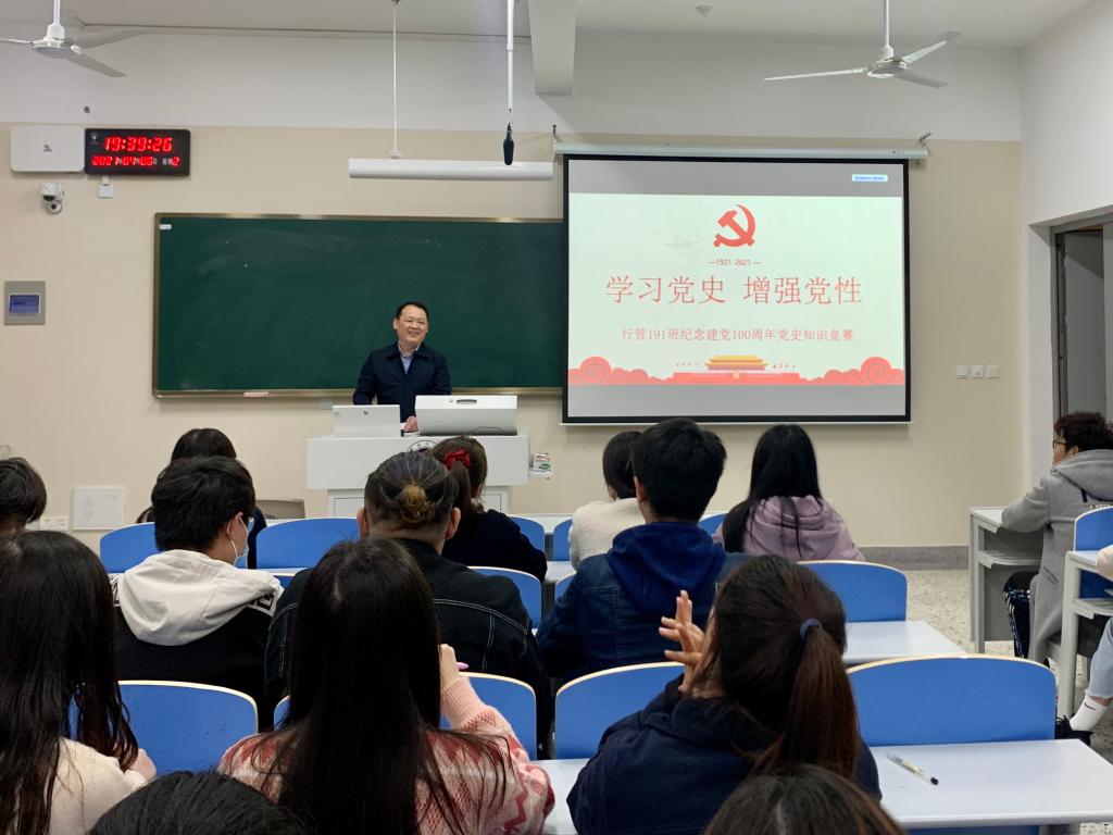 4月6日晚7时30分,伟德体育行管191班在苍梧校区文思楼102教室举行了“学党史 强信念”庆祝建党100周年党史知识竞赛活动。