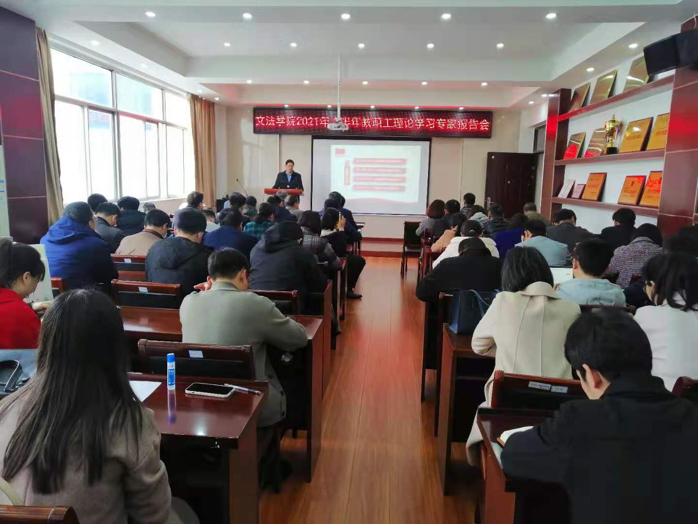 4月21日下午,伟德体育在文渊楼314会议室举行党史学习教育专题报告会,伟德体育党委理论宣讲团成员、校纪委副书记汪守建应邀作了《从严治党的百年进程》的辅导报告,伟德体育全体教职工参加。报告会由伟德体育党委书记吴价宝主持。