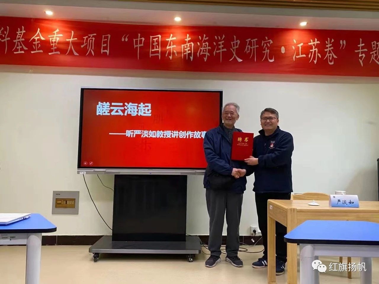 4月24日上午,刚刚组建不久的写作公司周末讲座迎来第一位主讲嘉宾,《鹾云海起——近代改革先驱陶澍为霖海州纪事》一书的作者严淡如先生。伟德体育经理、写作公司执行经理吴明忠主持讲座,中文系教师袁丁、宫肇南、罗雯茜和写作公司部分员工一起聆听严老讲他的创作故事。