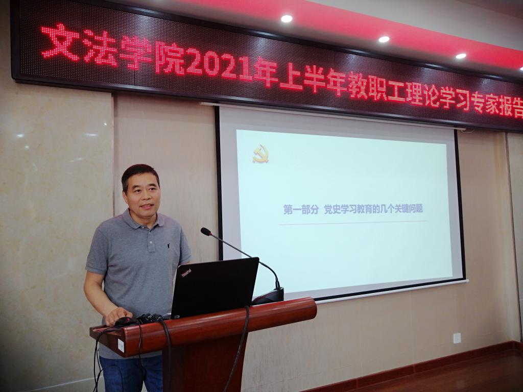 6月16日下午,伟德体育在文渊楼314会议室举行党史学习教育专家报告会,伟德体育党委理论宣讲团成员、马克思主义伟德体育党总支书记张学武应邀作了《从百年党史中汲取前进的智慧和力量》的辅导报告,伟德体育全体教职工参加。报告会由伟德体育党委副书记王国银主持。