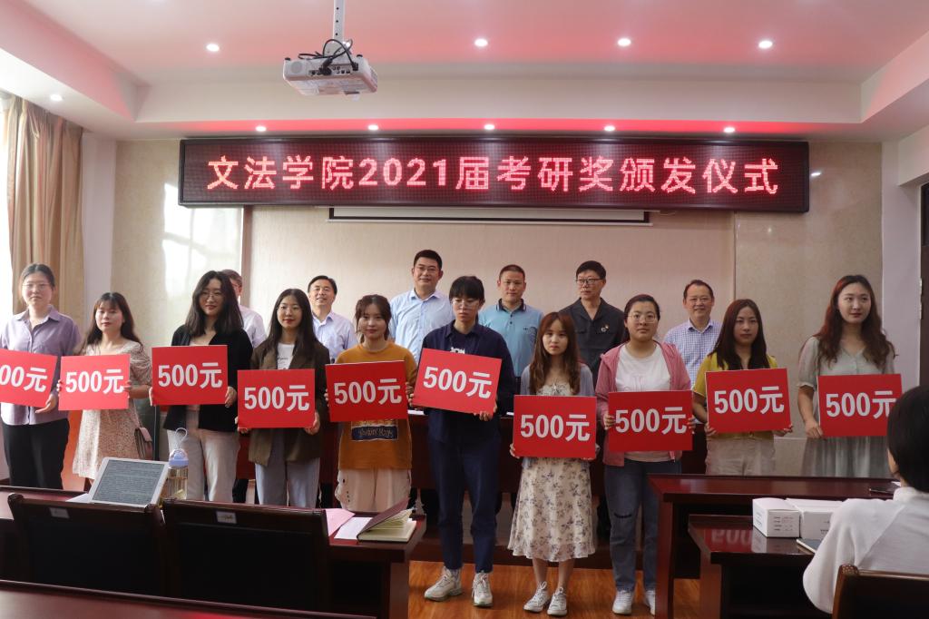 最后,参会嘉宾为考研毕业生代表颁发500元考研奖学金,并合影留念。