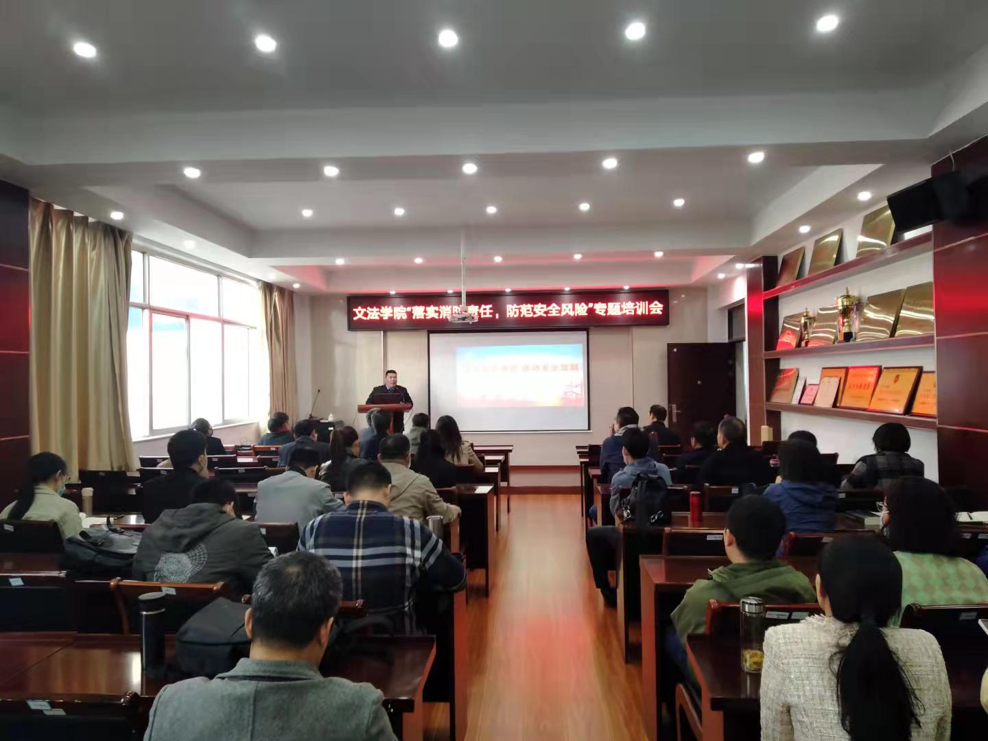 为增强安全防范意识,全面普及新修订的《安全生产法》和《消防法》,进一步做好消防安全工作,10月27日下午,伟德体育开展“落实消防责任,防范安全风险”专题培训,特邀请连云港市消防教员殷晓为全院教职工进行消防安全知识培训。