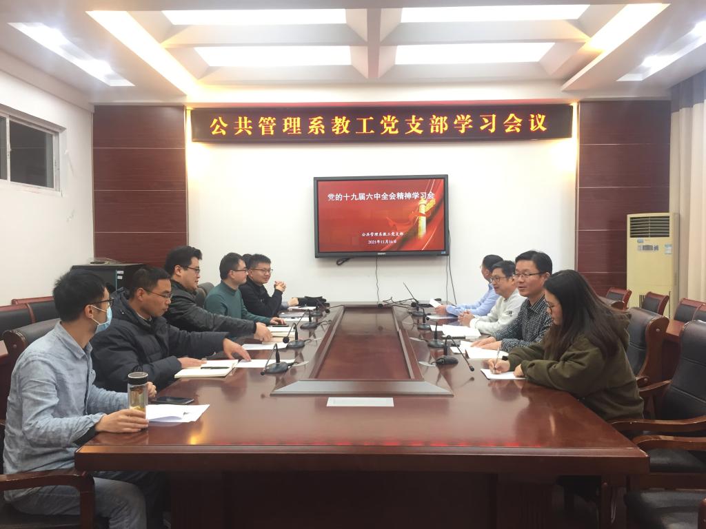11月16日下午,公共管理系教工党支部召开学习十九届六中全会精神专题会议,党支部书记杨殿闯主持会议,支部全体党员参加会议。