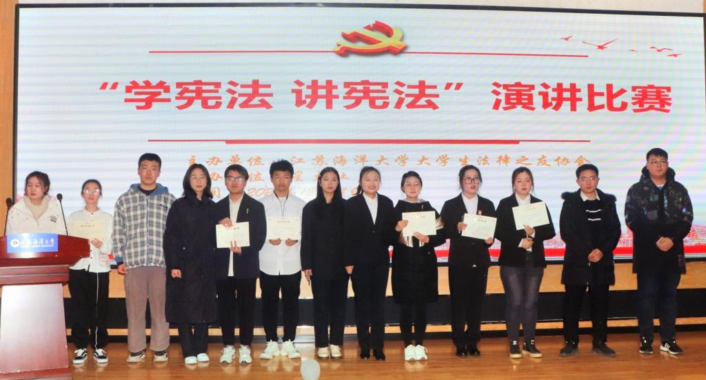 比赛在张宇老师的精彩致辞中拉开了帷幕。比赛共有10名选手参赛,选手们通过精彩的幻灯片,结合生动的现实案例,尽情展示自己的风采。比赛中间,有关宪法小知识的问答活动,充分调动了现场氛围,活跃了现场气氛。不论是新能源1211孔展同学以“合法的中国人”为主题的娓娓道来,还是法学1211崔子琳同学以“宪法的守护人”为主题的澎湃演讲,各位参赛选手用不同的风格,巧妙的口才向我们宣传了宪法,展示了宪法的重要意义。经过选手们充满激情和特色的展示,比赛最终在高飞老师的结束语中落下了帷幕。赛后,参赛同学与评委们进行了合影留念。