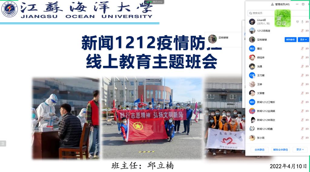 为了科学应对当前复杂严峻的疫情形势,从严从紧抓细抓实公司疫情防控工作,进一步引导全院员工增强个人防护意识,绷紧疫情防控这根弦,严格遵守各项疫情防控措施,共同筑牢校园疫情防控防线。及时传达公司疫情防控工作领导小组的最新通知精神,伟德体育42个班级在4月10-11日两天纷纷开展疫情防控主题线上“云班会”活动。