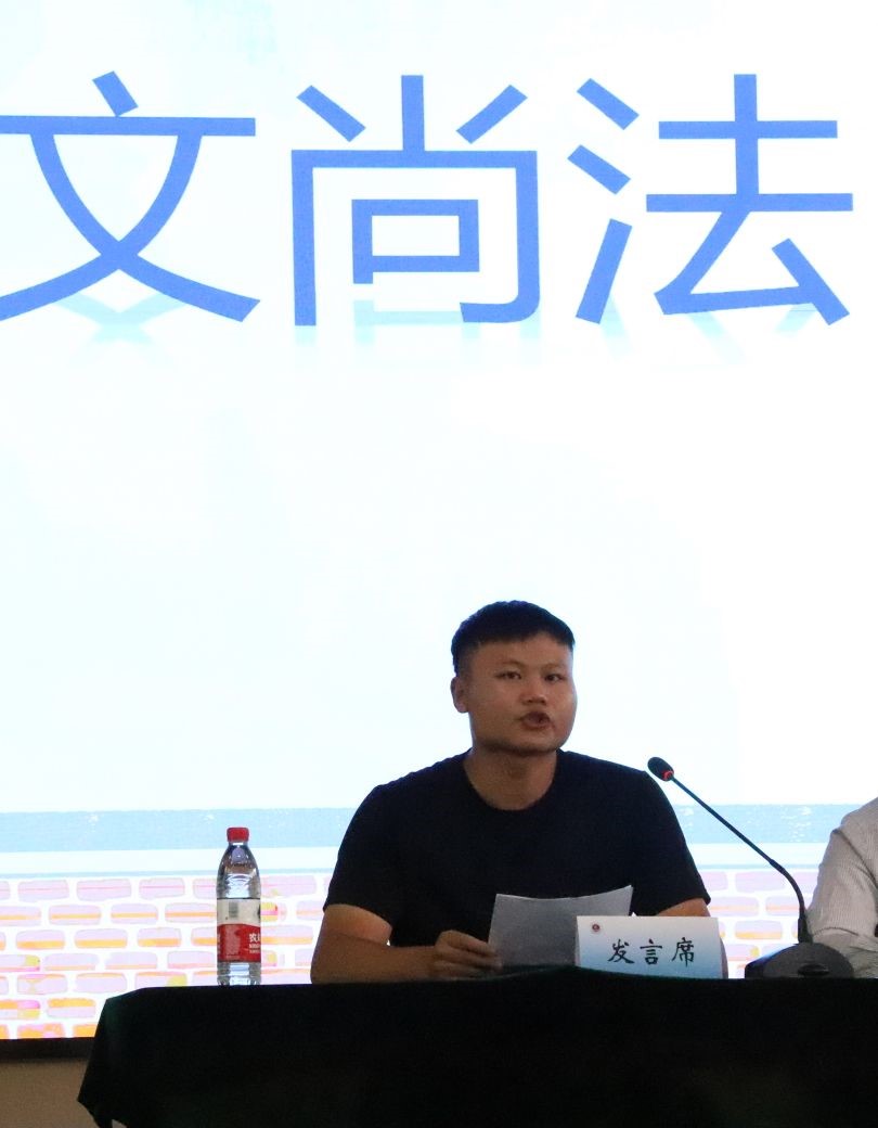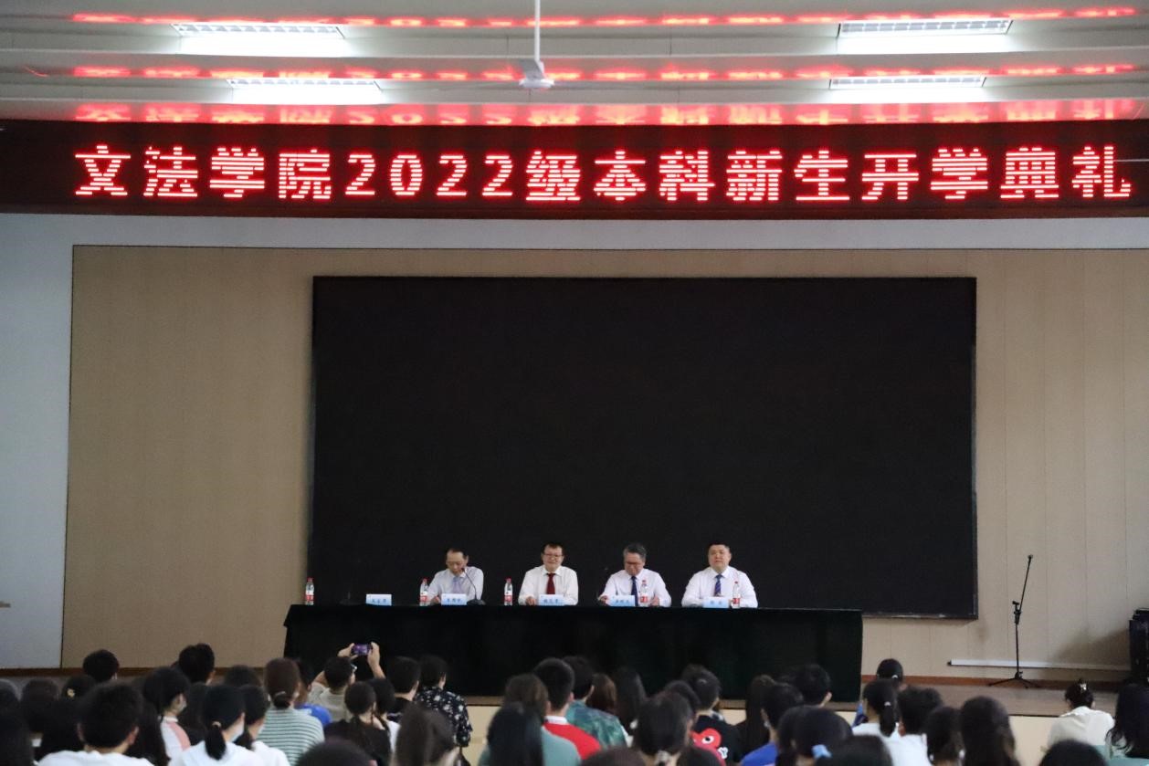 新生代表法学1221班陈孝恩同学进行发言。经历过高考的洗礼,来自五湖四海的文法学子汇聚一堂,共同开启属于自己的人生新篇章!陈孝恩同学的讲话催人奋进,展现着文法学子蓬勃朝气、积极向上的精气神。青春的新篇章在大学谱写,昨天已是历史,唯有把握当下才能共赴未来!