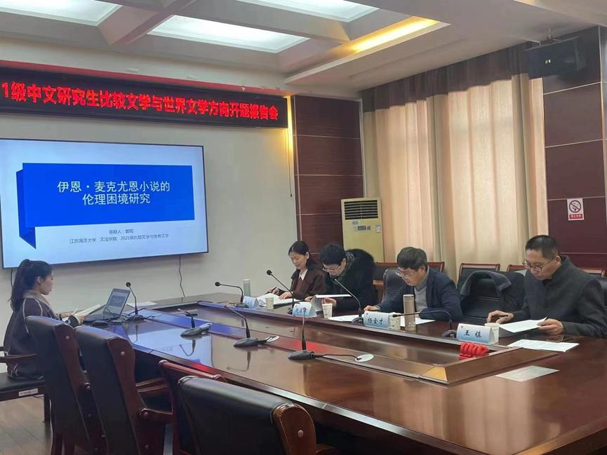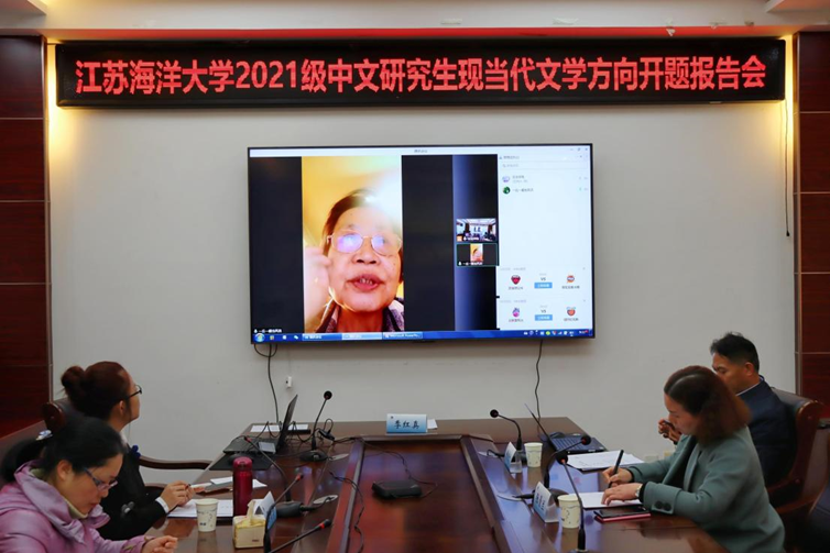 全体中文硕士生导师和2021级硕士研究生参与了此次开题报告会。各方向答辩小组分别邀请相关学科校外专家线上和线下同时参加。这次邀请的校外专家规格很高、阵容强大。他们包括江苏省研究生文学类教指委主任委员、南京大学杨金才教授,江苏师范大学研究生院经理、省研究生文学类教指委委员黄德志教授,沈阳师范大学季红真教授,扬州大学文公司副经理王逊教授,南京师范大学江守义教授,常熟理工公司王健教授,盐城师范公司王玉琴教授,江苏师范大学唐浩副教授和淮阴师范公司袁丁副教授。