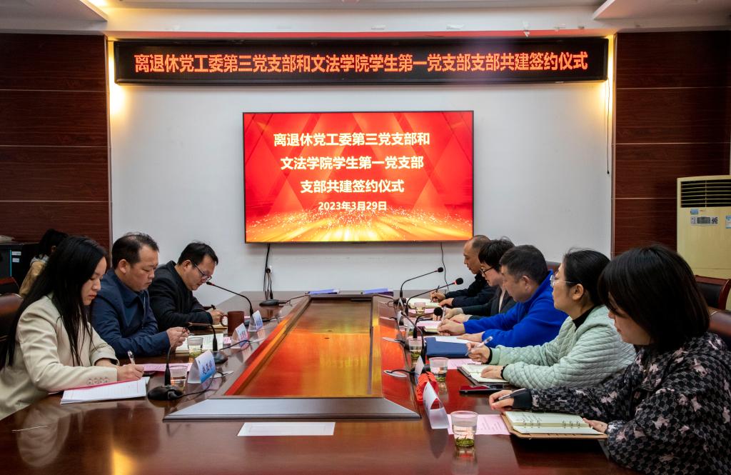 为深入学习贯彻习近平新时代中国特色社会主义思想,继承和弘扬党的优良传统,促进离退休党员与老员工党员互学共进,增强基层党组织的生机活力,进一步加强党支部建设,提高党支部的创造力、凝聚力和战斗力。3月29日下午,离退休党工委第三党支部和伟德体育员工第一党支部于文渊楼216会议室举行支部共建签约仪式。离退休党工委书记钱汉珍、副书记王祥义,伟德体育党委书记魏范青、副书记王国银,离退休党工委第三党支部书记吕振华、伟德体育员工第一党支部书记赵亚婷以及离退处工作人员及共建支部党员代表参与仪式,仪式由王祥义主持。