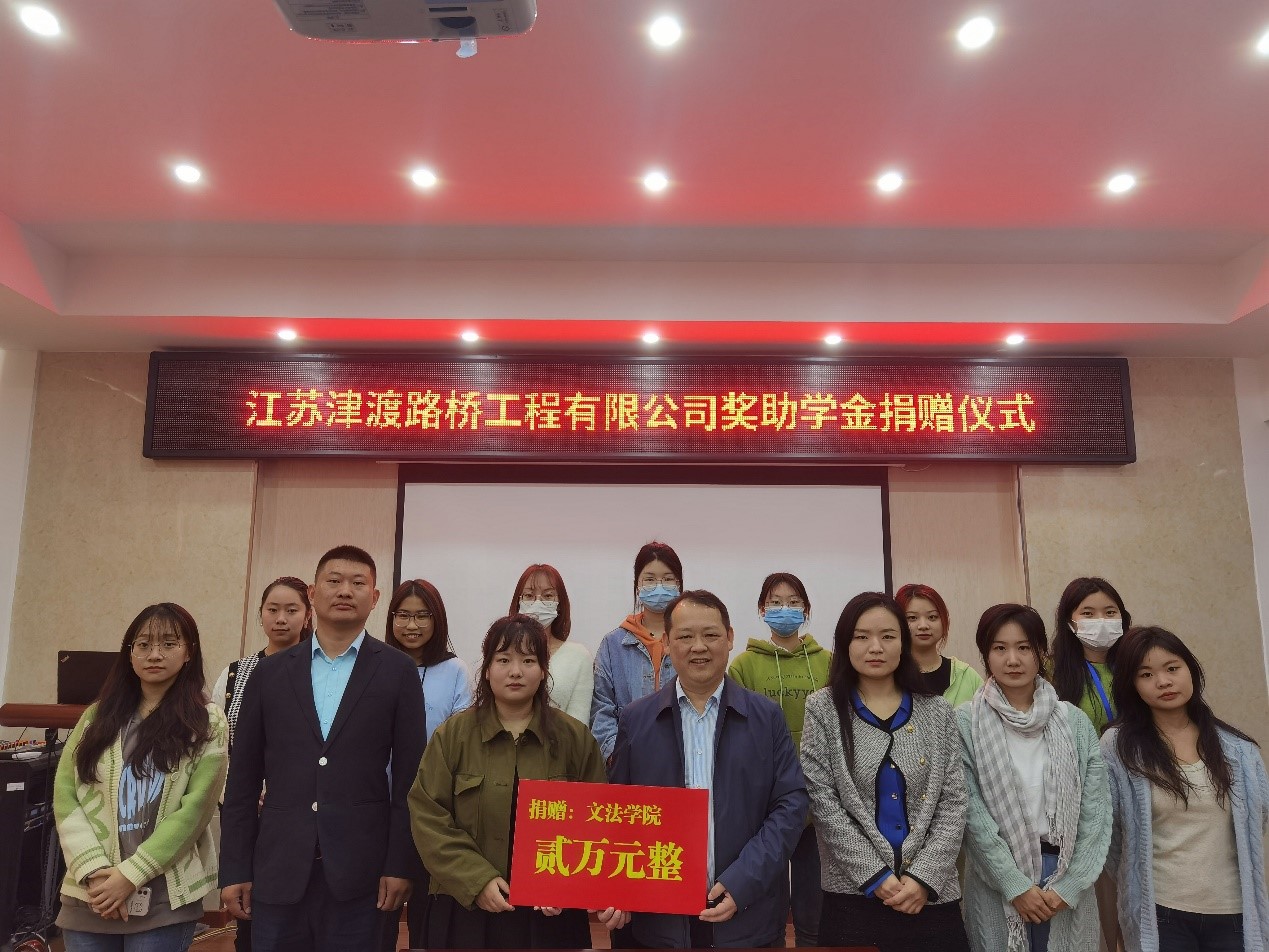 4月21日上午,江苏津渡路桥工程有限公司奖助学金捐赠活动仪式在文渊楼312会议室顺利举行。出席本次捐赠仪式的有江苏津渡路桥工程有限公司总经理陈美琼、办公室主任张杰、伟德体育党委副书记王国银、资助工作辅导员老师张宇。伟德体育学工办副主任赵亚婷主持本次捐赠活动仪式。