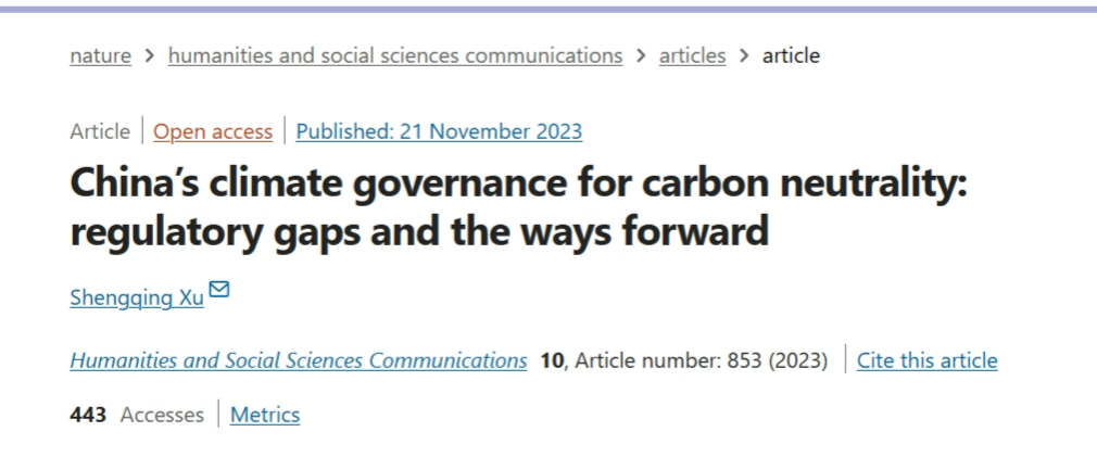 引用格式:Xu, S. China’s climate governance for carbon neutrality: regulatory gaps and the ways forward. Humanit Soc Sci Commun 10, 853 (2023). https://doi.org/10.1057/s41599-023-02381-8