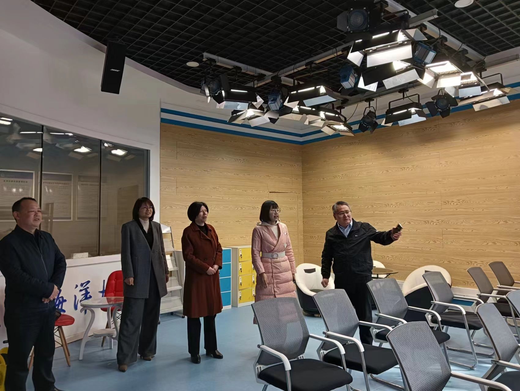 交流研讨前,徐州客人参观了公司模拟演播室、写作指导中心。