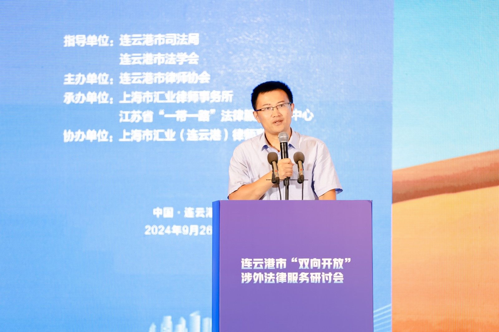 此次研讨会由连云港市司法局、连云港市法学会指导,连云港市律师协会主办,上海市汇业律师事务所、江苏省“一带一路”法律服务研究中心承办。清华大学、华东政法大学等高校的学者和省内外政法单位、律所的实务专家以及企业家代表约180人参加会议。