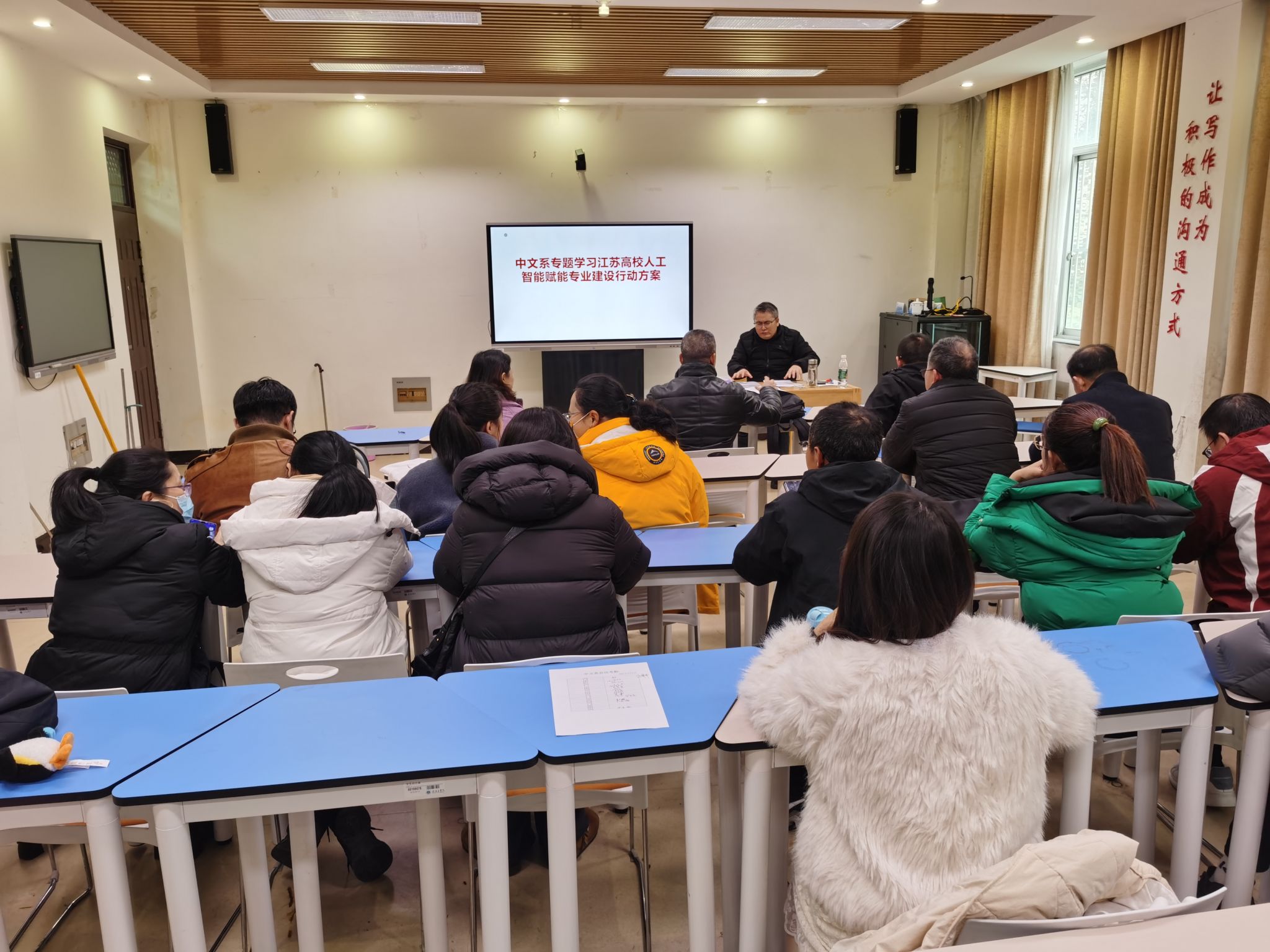 Deepseek横空出世,标志着人工智能技术再次迭代。bevictor伟德中文专业作为国家一流专业建设点,入选江苏省品牌专业建设三期项目后,如何抓住机遇,借助人工智能进一步提高专业建设水平?2025年3月5日下午,中文系组织教师专题学习《江苏高校人工智能赋能专业建设行动方案》。伟德体育经理、中文系主任吴明忠主持学习会。