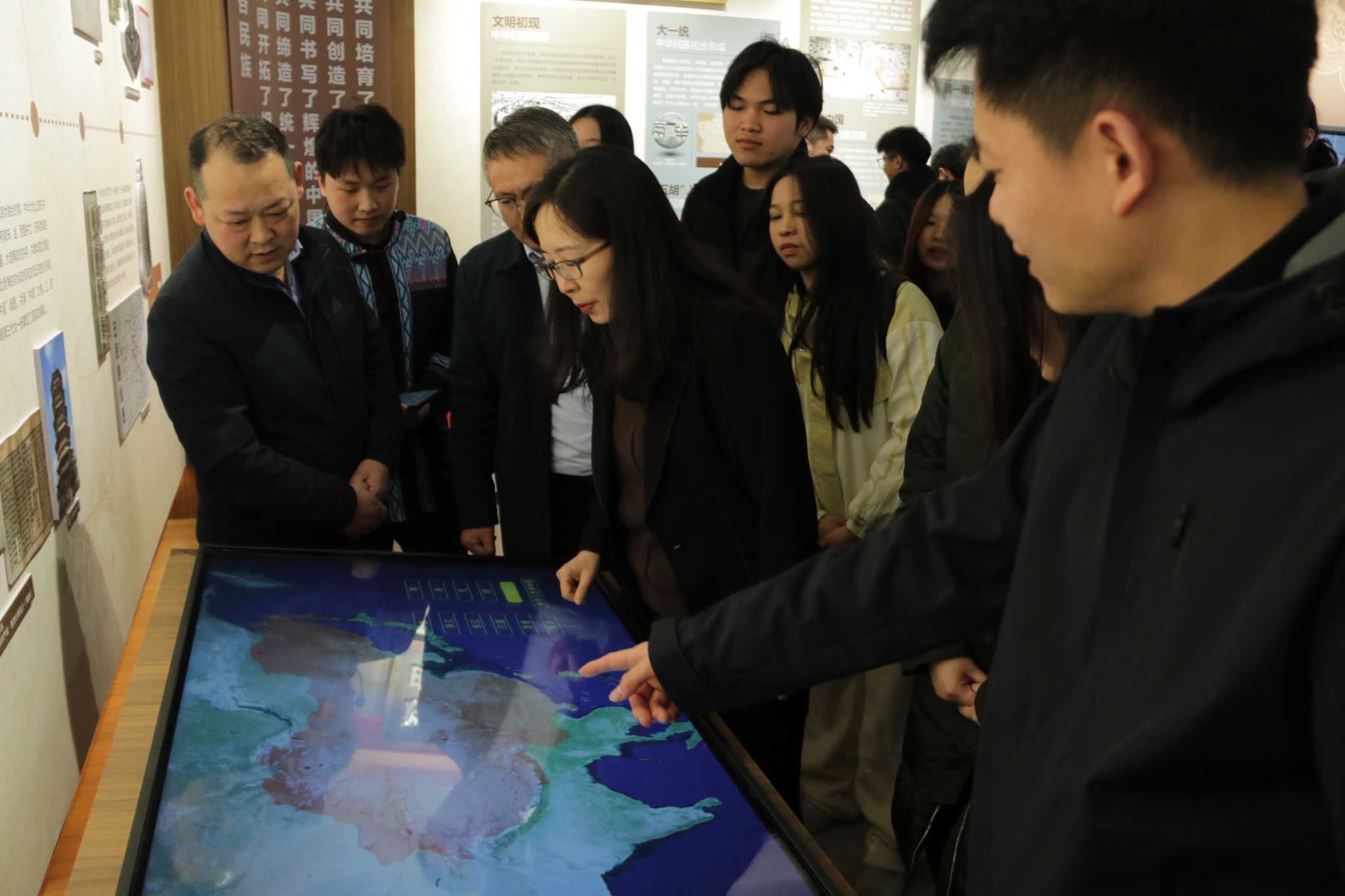 中华民族是一个多元一体的大家庭,各民族在开拓辽阔疆域的过程中,形成了紧密的血肉联系。讲解员石一鸣以专题片为引,指出中华民族的历史是一部各民族共同奋斗、共同发展的历史。从古老的甲骨文到当今的简体汉字,从原始的部落联盟到统一的中央集权国家,一件件珍贵的文物、一份份详实的史料,让同学们沉浸其中,感受着中华民族深厚的文化底蕴。