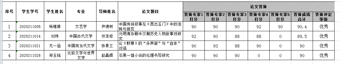 伟德体育2023年上半年中国语言文学学科硕士研究生论文答辩成绩优秀公示