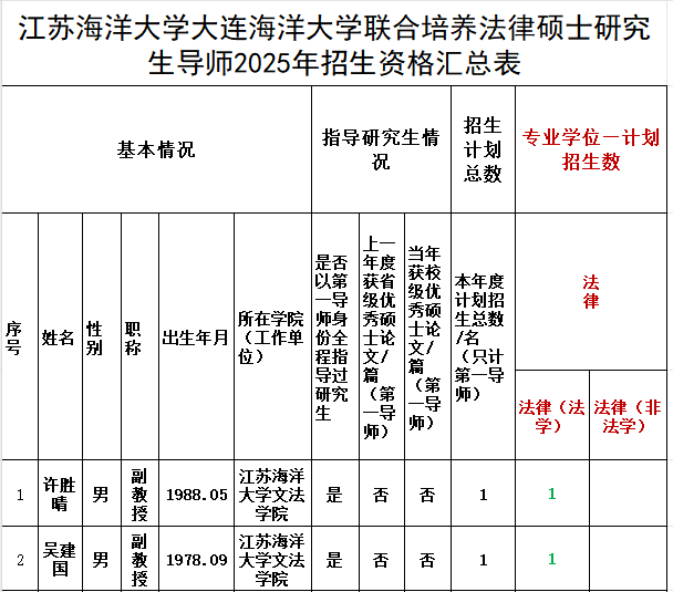 为加强导师对研究生的指导,切实提高公司产品质量,根据大连海洋大学及公司关于法律硕士公司产品工作的要求,经招生计划申报和招生资格审核,现将2025级硕士生导师招生计划公示如下: