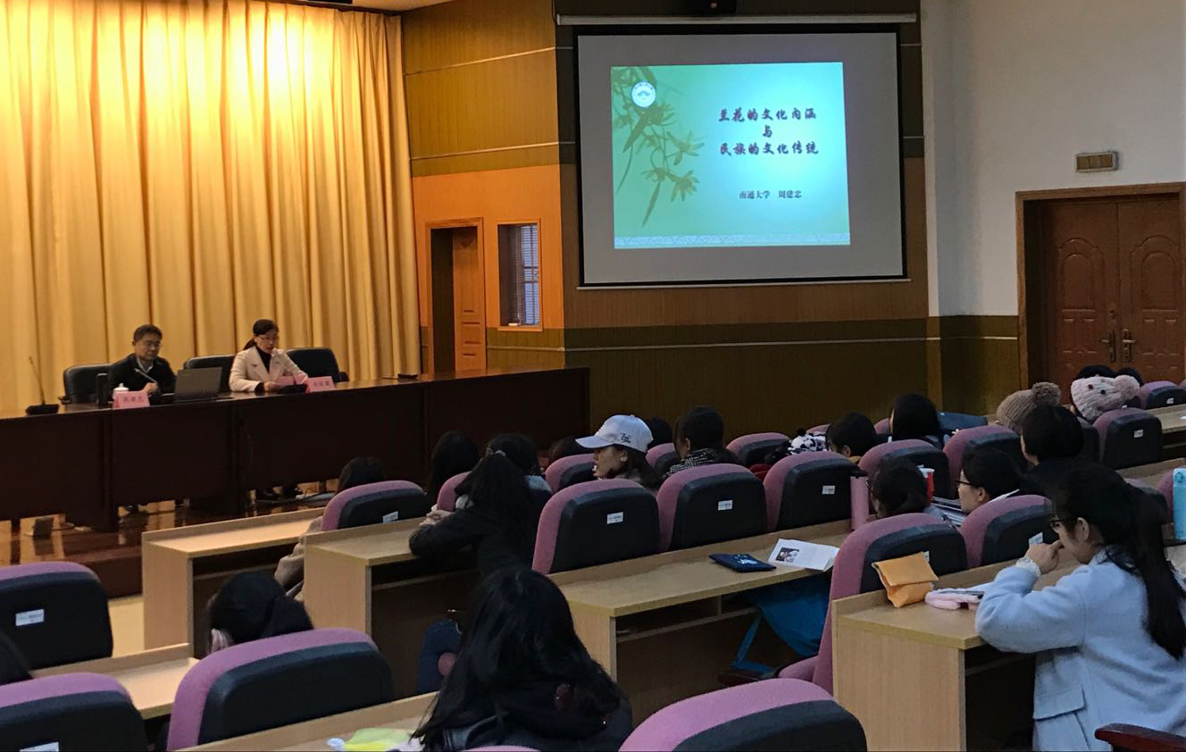 周建忠教授围绕兰花的文化内涵和民族的文化传统,对兰花的自然属性和文化象征都做出了详细的论述。周教授从兰花的自然属性谈起,兰花娇美华贵,其香、色、姿都为群芳之冠,而其培育之难、养护之细亦颇可观。就文化象征而言,兰花独特的魅力使它深深渗透到中国古代人民的伦理生活领域,在一定程度上塑造了中国人的审美品味。兰花的文化内涵在不同的社会、不同的时代更有丰富的发展。朝代更替时,兰花体现出一种独立不迁的操守;民族危难时,兰花帮助我们更多的人保全名节;和平年代,兰花帮助我们陶冶高雅的情操。