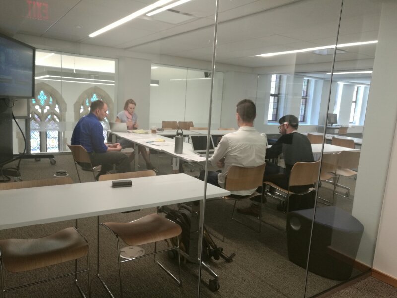 根据公司分管领导要求,公司中央与地方财政共建实验室“互联网+语言习得和创意写作综合训练中心”负责人、文公司经理吴明忠利用访学机会,近日专门到耶鲁大学写作教学指导中心进行参观考察,受到中心负责同志Elena老师的欢迎。