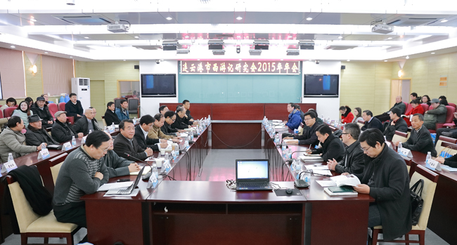 本次年会特邀全国西游记研究资深专家蔡铁鹰、连云港市西游记研究资深专家李洪甫作学术报告,介绍了全国西游记研究动态和个人最新研究成果。在学术研讨环节,江苏省西游记文化研究会秘书长、公司学术期刊社社会科学编辑部副主编徐习军,江苏酷歌数码集团董事长、市西游记研究会首席顾问赵敏哲,江苏省海洋文化产业研究院经理、公司艺术公司张琦,文公司副教授郭淑娟,公司中亚职工代表、俄罗斯喀山大学东方系毕业生热内娅,以“西游记与中外文化传播”为主题,结合西游文化产业发展,分别发表主旨演讲。连云港市人大原副主任、市委宣传部原部长、西游记研究会总顾问吴加庆同志最后作总结讲话,希望研究会进一步深入开展西游记文本研究、产业研究和域外传播研究,主动为市委市政府谋划“十三五”文化产业发展建言献策。