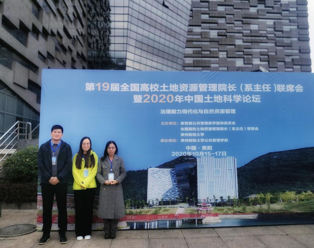 10月15日至17日,“第十九届全国高校土地资源管理经理(系主任)联席会暨2020年中国土地科学论坛”在贵阳举行。本届论坛由教育部公共管理教学指导委员会土地资源管理分委员会、全国高校土地资源管理经理(系主任)联席会和贵州财经大学主办,来自全国各地163所高校和机构的专家学者、研究生及工程技术人员等500余人参会,公司土地资源管理专业胡赛、千倩、郭赟三位博士参加了此次学术会议。